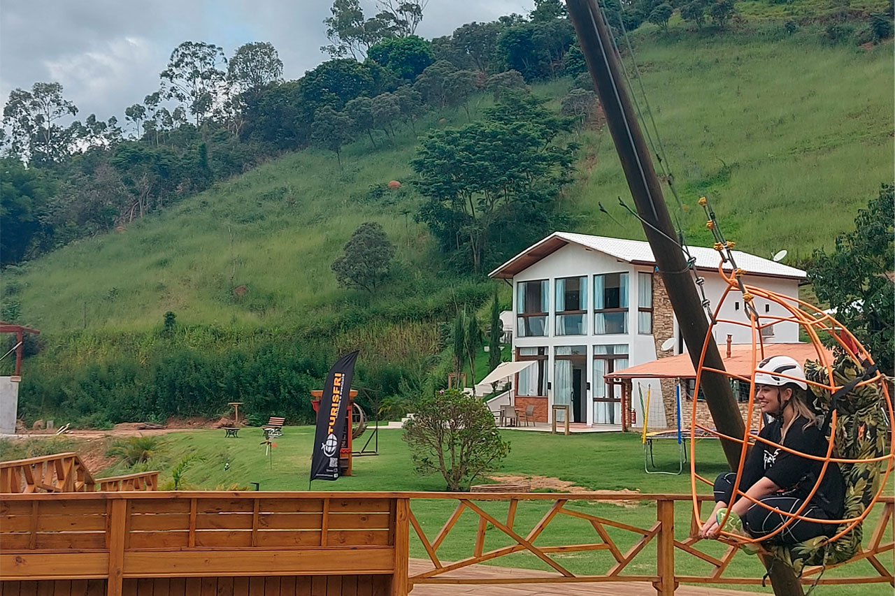 Prepare-se para uma experiência de pura adrenalina e conexão com a natureza no Balanço Gigante do Turisfri Resort. Conectado a um avançado sistema de tração motorizado e içado a até 5 metros de altura, esse balanço proporciona momentos de emoção e liberdade, enquanto você é projetado a uma distância de até 7 metros sobre o Vale das Montanhas.