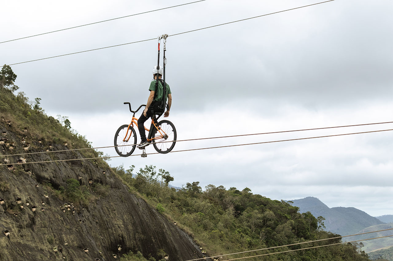 A Skybike é mais do que uma aventura; é um convite para redescobrir a liberdade, enquanto você pedala acima de um dos cenários mais deslumbrantes de Nova Friburgo. Suspenso a 40 metros de altura, o percurso de 460 metros (ida e volta) proporciona uma experiência inesquecível, misturando adrenalina e contemplação.