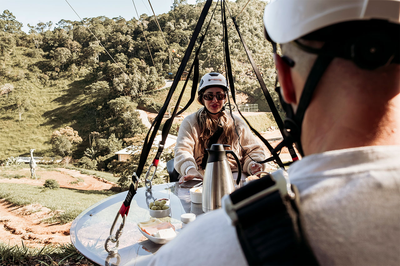 Imagine saborear um café cuidadosamente preparado com produtos regionais enquanto é envolvido pela vista estonteante do Vale das Montanhas, um dos cenários mais belos de Nova Friburgo, no Rio de Janeiro. A mesa transparente, suspensa a 40 metros de altura, proporciona a sensação de flutuar sobre o vale, tornando a experiência ainda mais especial.